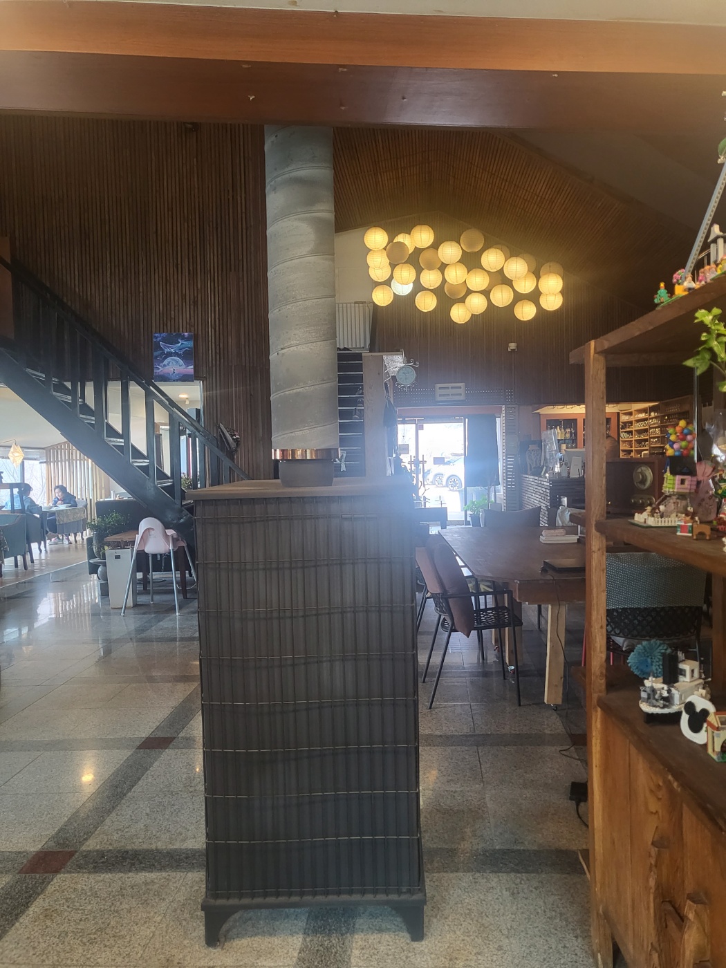 겨울에는 따뜻하게 이용했을 것 같은 난로도 가게 한가운데 떡하니 자리 잡고 있었어요. 전체적으로 어둑한 느낌에 노란 불빛의 조명으로 조화를 이루고 있어 데이트 장소나 기분전환할 때 찾기 좋은 분위기였습니다.